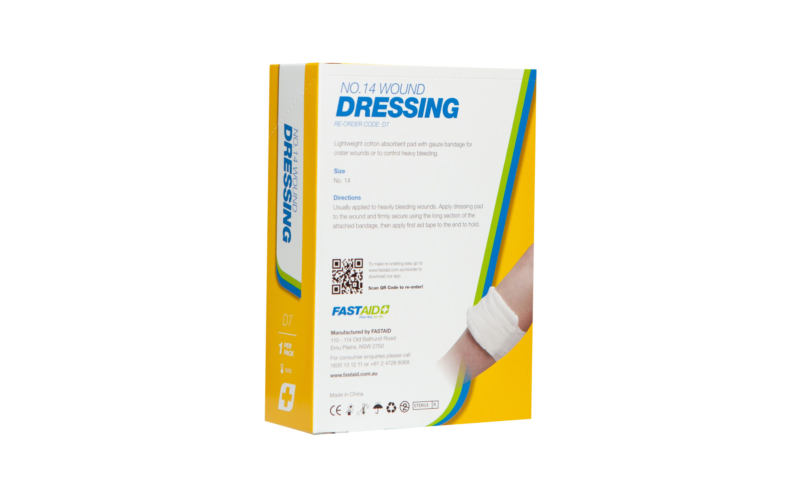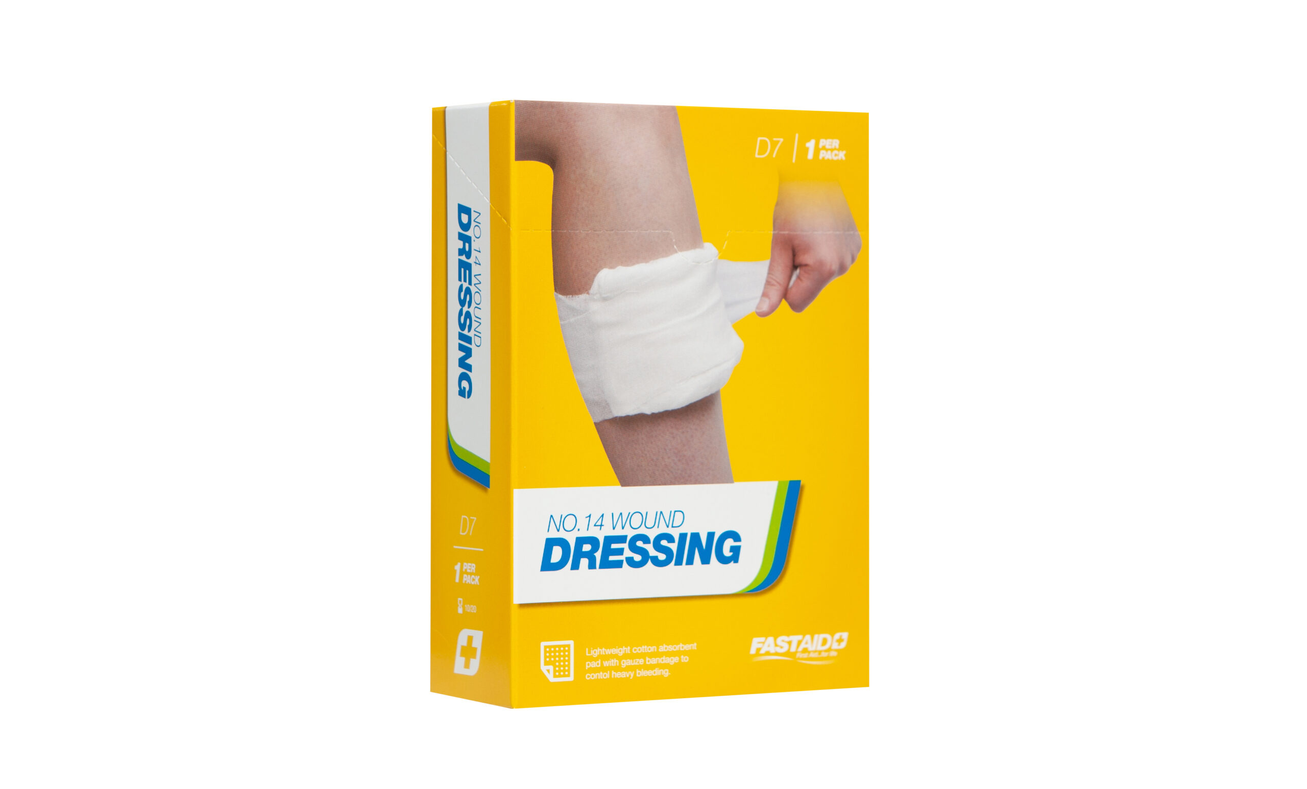 Lightweight cotton absorbent pad with gauze bandage for crater wounds or to contol heavy bleeding.