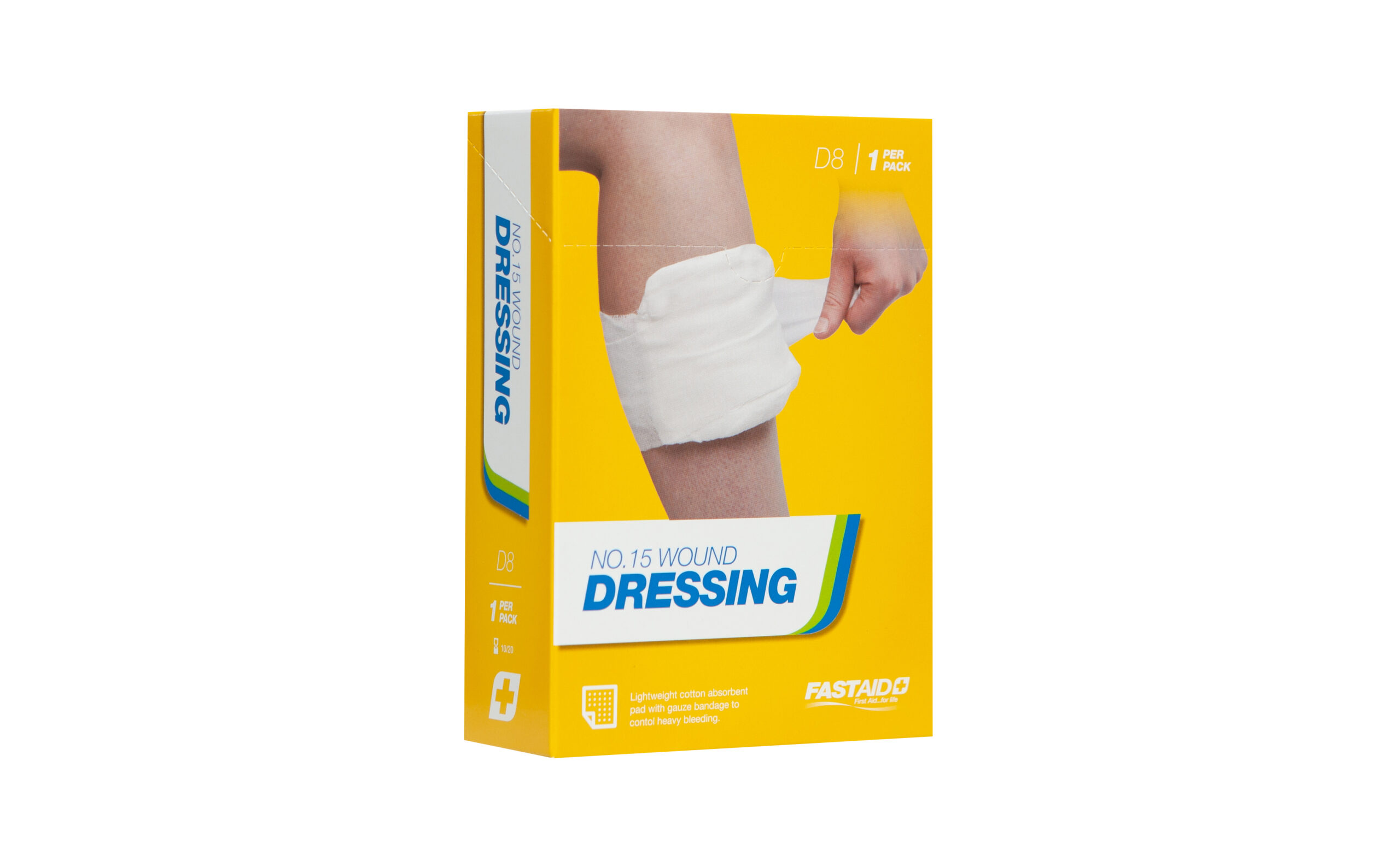 Lightweight cotton absorbent pad with gauze bandage for crater wounds or to contol heavy bleeding.